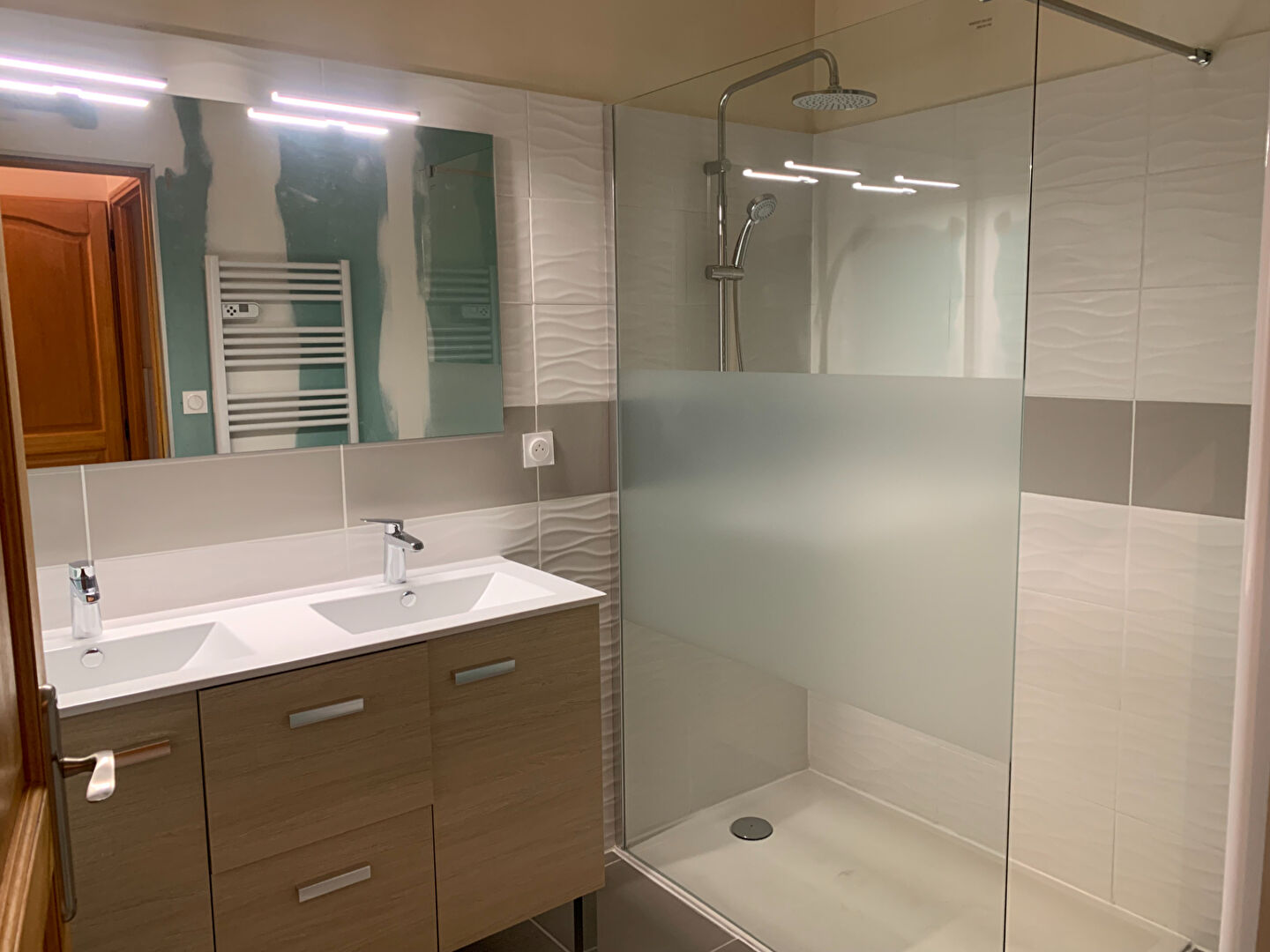 Composée d'une entrée, cuisine avec rangements, pièce de vie lumineuse, cellier, deux chambres avec placards, salle d'eau composée d'une douche à l'Italienne et WC indépendant.