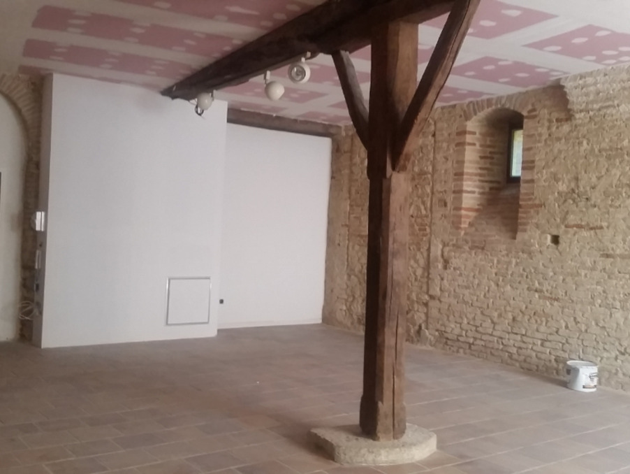 Caussade centre, grand local commercial avec vitrine composé d'un bureau de 10 m² environ et de 2 grandes pièces ayant gardé des éléments anciens : tomettes, mur en briquettes, porte ancienne en bois et poutre.