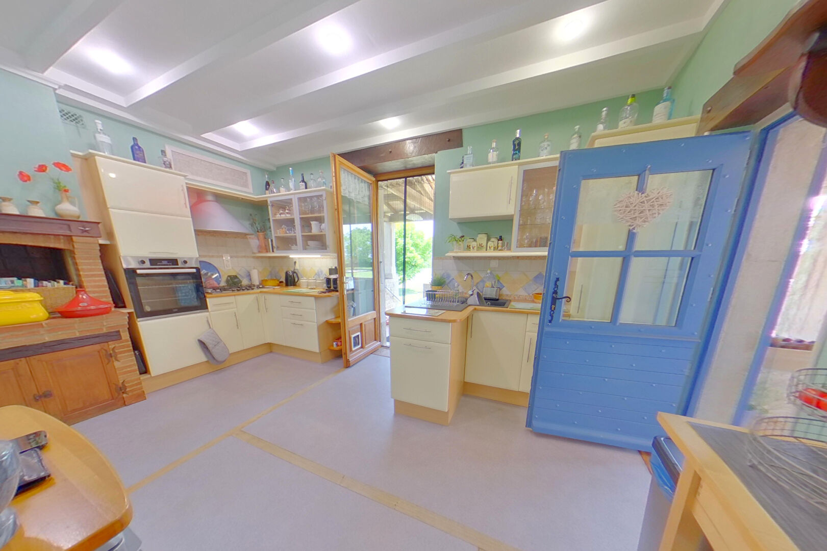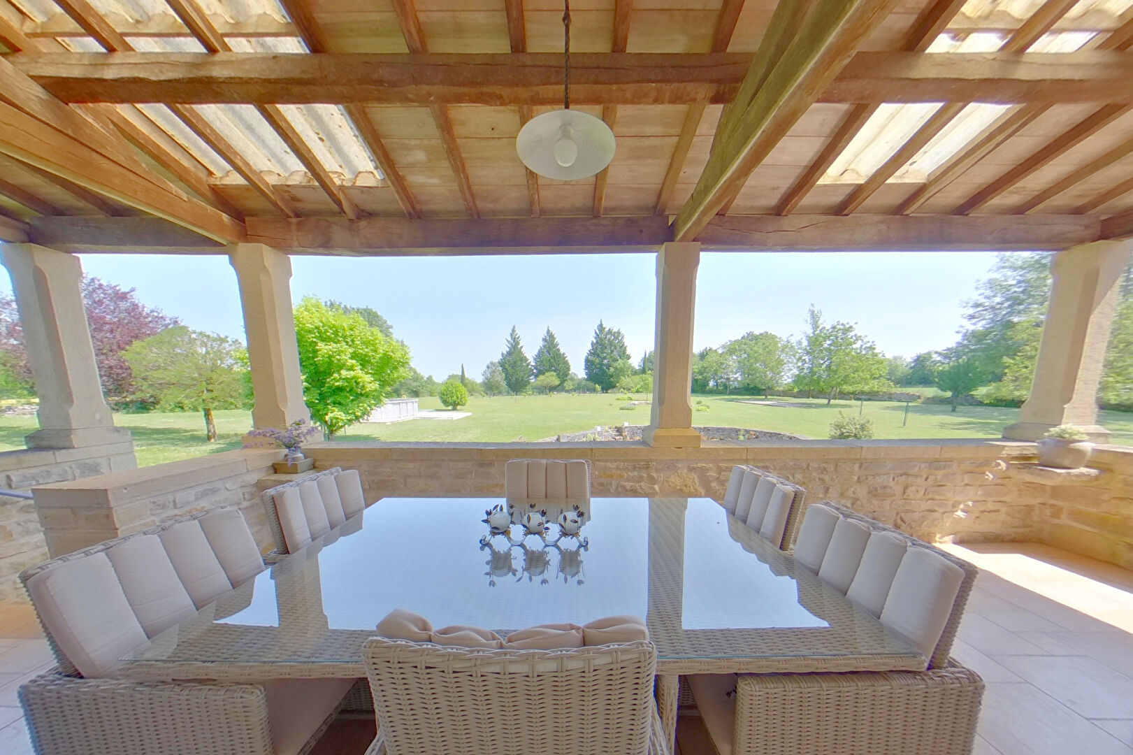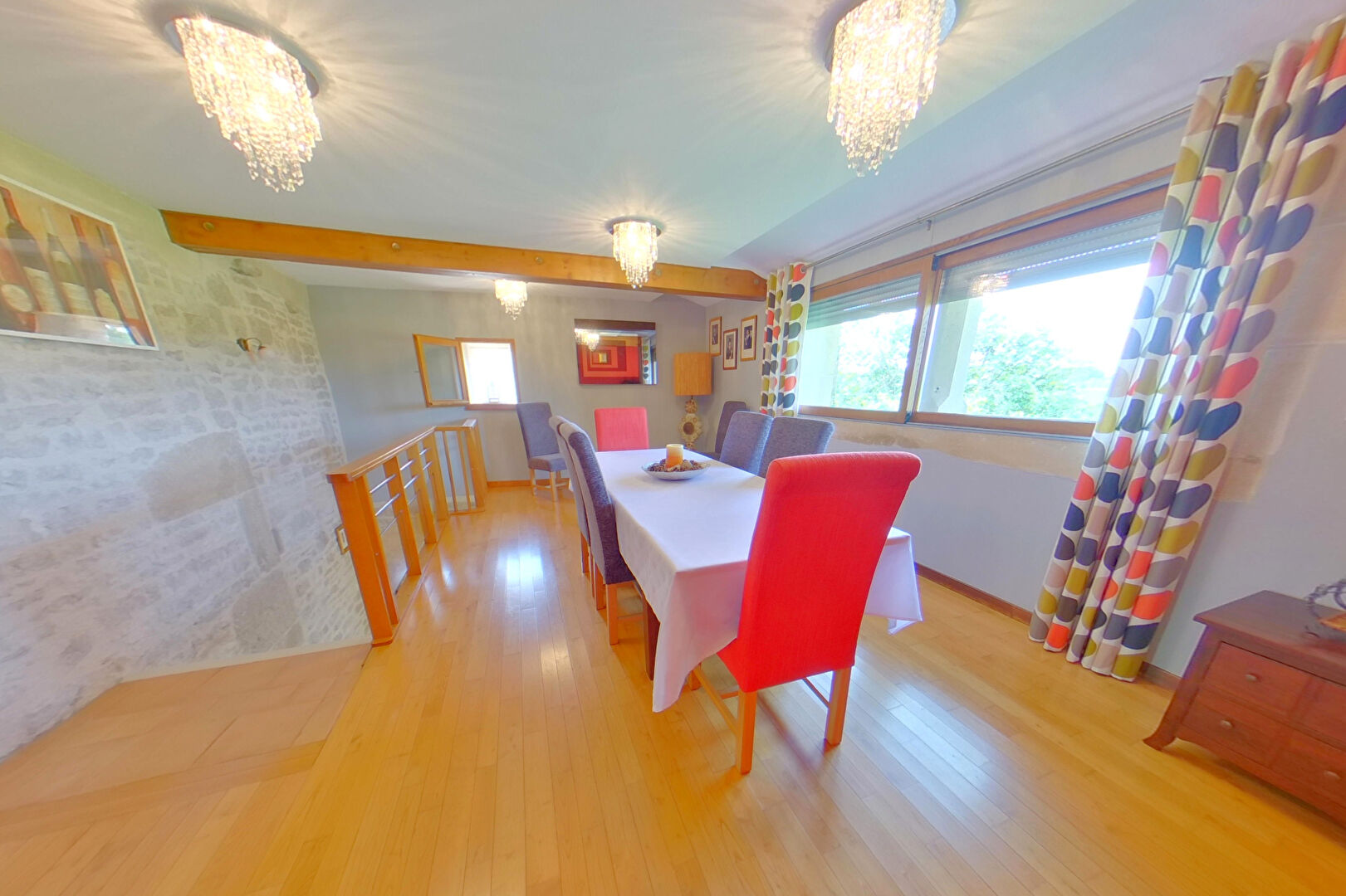 Au rez-de-chaussée il y a la possibilité de créer un appartement indépendant avec sa propre porte d'entrée. Actuellement il y a une salle de gym, deux chambres et une salle de bain avec WC indépendant. Il y a un escalier à l'intérieur qui communique avec le reste de la maison. Nous entrons dans l'habitation principale par l'escalier grandiose en pierre et la grande terrasse couverte qui donne sur le parc avec ses arbres matures, et la piscine hors sol. A cet étage un joli salon avec insert qui chauffe la chambre au-dessus, la salle à manger, la cuisine, wc et suite parentale avec salle d'eau. A l'étage se trouvent deux belles chambres et un grand espace de lecture et la salle d'eau familiale. Sous la maison se trouve la buanderie/cuisine d'été et sous la terrasse couverte, la sauna.