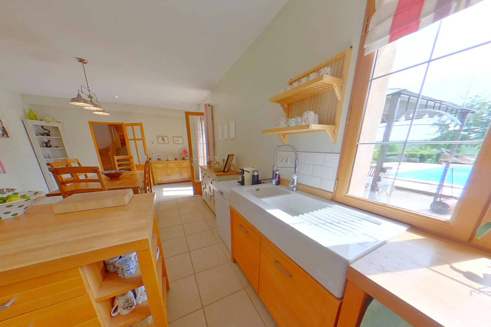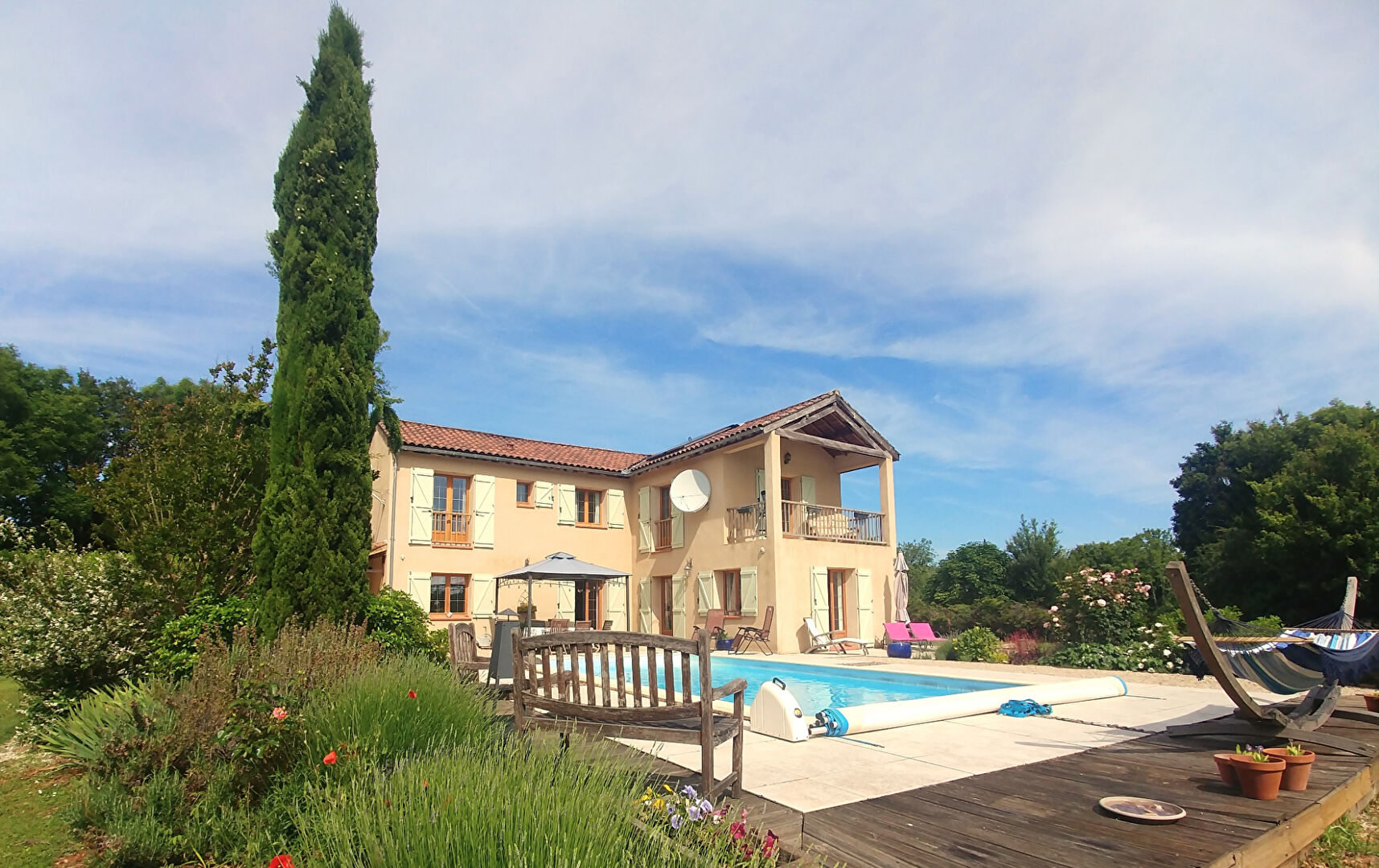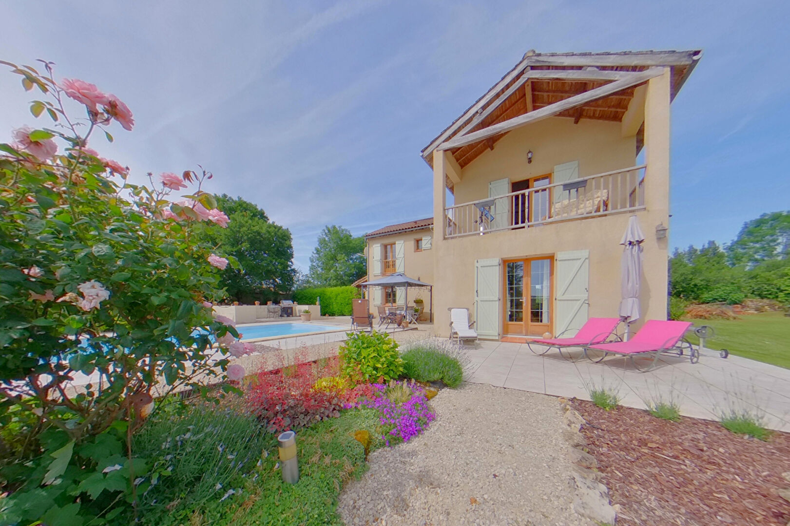 Fabuleuse maison de famille, construite en 2008, située dans un petit village calme entre Caylus et Saint Projet. Le chemin d'accès privé, entouré de murets en pierre, nous mène via le parc arboré à la maison d'entrée. D'ici, nous entrons dans le hall d'entrée intérieur avec WC et buanderie, d'où nous accédons deux belles pièces de vie; la belle cuisine/salle à manger lumineuse, éléments de cuisine haut de gamme, équipée (piano etc) donnant sur la terrasse et la piscine derrière. A l'autre bout du hall, le salon avec son poêle à bois Godin ayant les ouvertures au sud, à l'est et à l'ouest. Une superbe pièce ayant un accès vers sa terrasse qui donne sur la pelouse et l'autre porte donnant sur la terrasse du barbecue, côté piscine. Au premier étage trois chambres dont une magnifique suite parentale avec balcon sur le jardin et la vallée de la Bonnette et sa salle de bain avec baignoire et douche et une salle d'eau familiale.