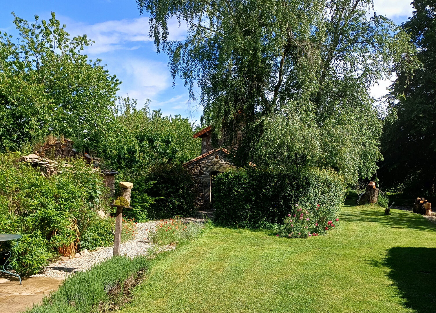 A côté de la maison se trouve une grange en pierre volumineuse de 100 m² environ (sur deux niveaux), idéale pour transformer en habitation si besoin. Beau jardin arboré d'un demi-hectare. Sentiers de randonnées et vélo à quelques pas de la propriété. Commerces, gare SNCF, restaurants etc. à 5 minutes.
