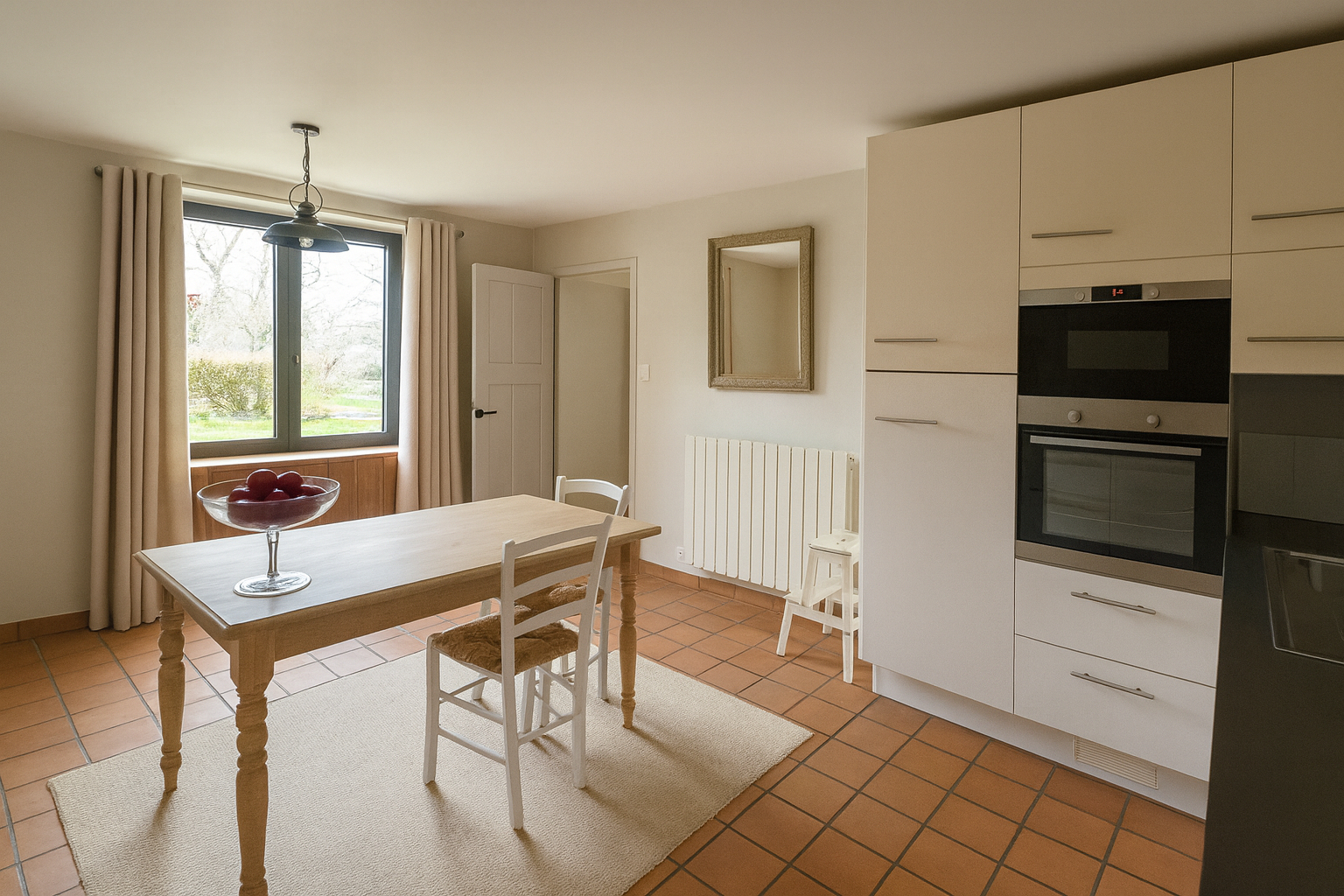 Construite en 1819 et rénovée avec goût, confortable et en très bon état (fenêtres refaites très récemment). La maison principale propose 3 chambres, un séjour chaleureux et lumineux, deux WC.