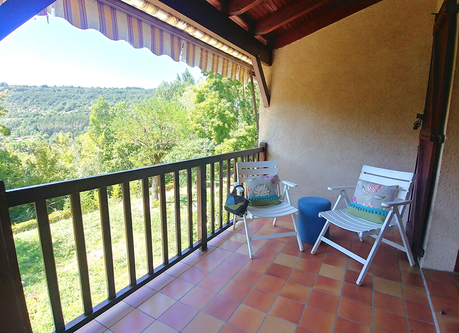 Implantée au milieu de son magnifique parc arboré, cette maison plain pied se situe sur les hauteurs du village ayant des vues à couper le souffle vers les Gorges de l'Aveyron. L'énorme garage de 74m2 se situe au sous-sol avec un studio avec coin cuisine et wc et une cave transformable pour doubler l'espace habitation, si besoin. Au dessus se trouve la partie habitable, accédé soit à l'intérieur, par un escalier, soit à l'extérieur. Le hall d'entrée, avec accès à l'escalier descendant et un cellier, fait la séparation des parties jour et nuit. Cuisine équipée et salle à manger sur le côté est et donnant directement sur le jardin, le salon, côté ouest, donnant sur un grand balcon couvert d'où on se régale des vues magnifiques vers les Gorges de l'Aveyron. La partie nuit comprend 4 grands chambres, deux salles d'eau et les wc. Une maison qui a été bien entretenue ayant quelques mises à jour à faire pour créer une belle maison confortable. Dans le beau jardin on a les vues incroyables sur les collines, les gorges et le village. Toutes commodités et attractions touristiques à pied (piscine plein air, rivière, boutiques, restaurants, boulangeries etc.) . Quelques mises à jour à faire pour créer une superbe maison de famille !