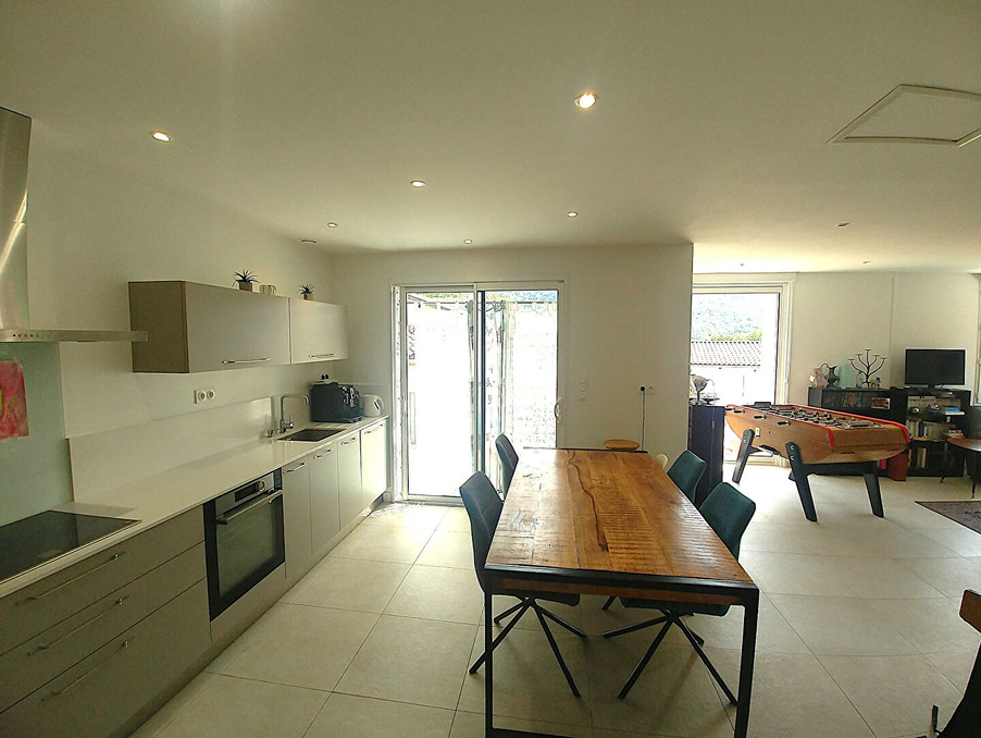 d'une belle pièce de vie de 54 m² avec cuisine contemporaine équipée et ayant un accès à la terrasse plein sud. 4 chambres, une salle d'eau et une salle de bain. La maison a également un grand garage.