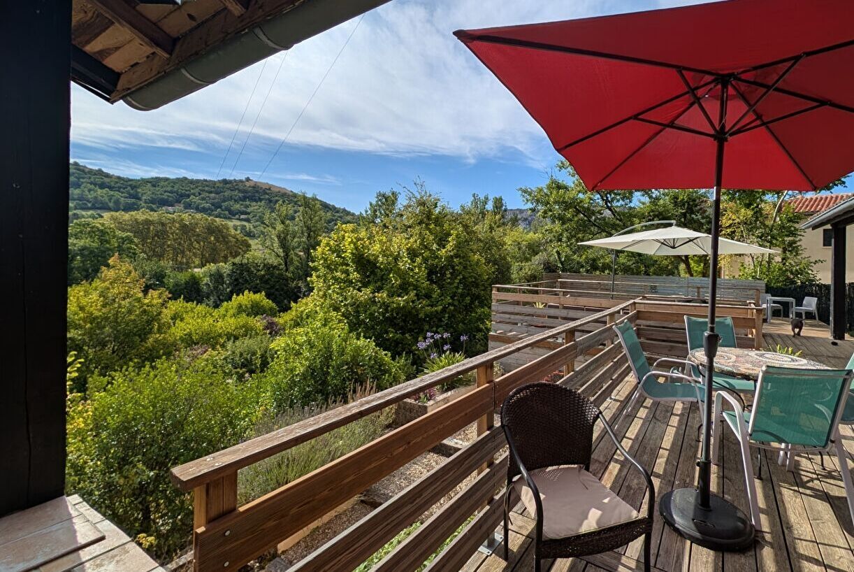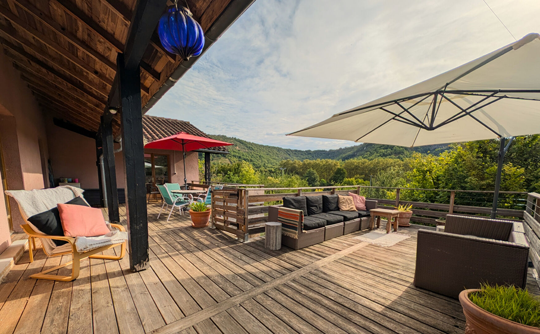 Toutes les commodités et attractions de Saint Antonin à pied, mais située dans un endroit d'exception au calme, cette maison a des vues 180° vers les Gorges de l'Aveyron et la campagne. Au rez de jardin, possibilité de créer une habitation indépendante T2 avec cuisine équipée et salle d'eau tout récemment installées. A ce niveau une jolie chambre d'amis avec un accès vers une petite terrasse, une autre pièce qui fait office de salle de musique/salon et une cave. Un escalier à l'intérieur communique avec le rez-de-chaussée en haut. Ici se trouvent une jolie cuisine/salle à manger avec des vues sur la verdure et une porte fenêtre ouvrant sur la terrasse en bois. Le couloir mène à la salle de bains avec douche et baignoire, deux chambres et le grand salon, qui a deux ouvertures sur la terrasse énorme. On imagine de belles tablées de fêtes avec ses proches avec une piscinette pour se rafraîchir, quand il fait chaud! A visiter rapidement!